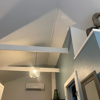 This studio was originally an all white studio that was being used as a teen's bedroom with purple iridescent curtains with much work needed on the ceiling.